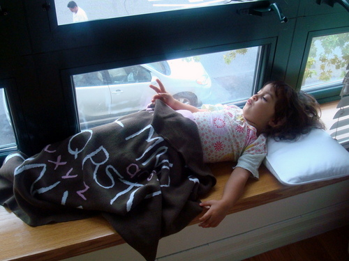 Depois dos seus 2 anos é incrível, mas parece que a energia dobrou. É difícil lhe manter em casa num dia de chuva, e Sabado de manhã, aprontou todas. Quando cansou, pediu pra mimir, mas na janela da sala. Foi lá, buscou o seu “Nanain”, e por alguns minutos que pra você é a eternidade e pra mim é um piscar de olhos, ficou lá apreciando a paisagem e fingindo que dormia. Ô coisa linda.