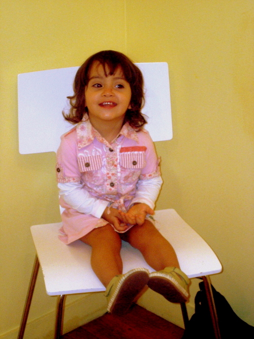 Você já está acostumada com os médicos, fomos em 4 visitas nessas últimas semanas, dois da mamãe e dois seu. Você gosta, e ontem quando foi comigo fazer o checkup anual, se comportou PERFEITAMENTE nos 40 minutos que ficamos lá. Sentada na cadeira, só observava, e em alguns momentos demonstrava preocupação com a mamãe, e não tirava o olho de nada. Tão observadora que quando me viu tirando as coisinhas que grudam na pele pra fazer o eletrocardiograma, reparou que eu havia esquecido de tirar uma da perna, que já estava coberta pela calça. “Mamãe, aqui, tila”